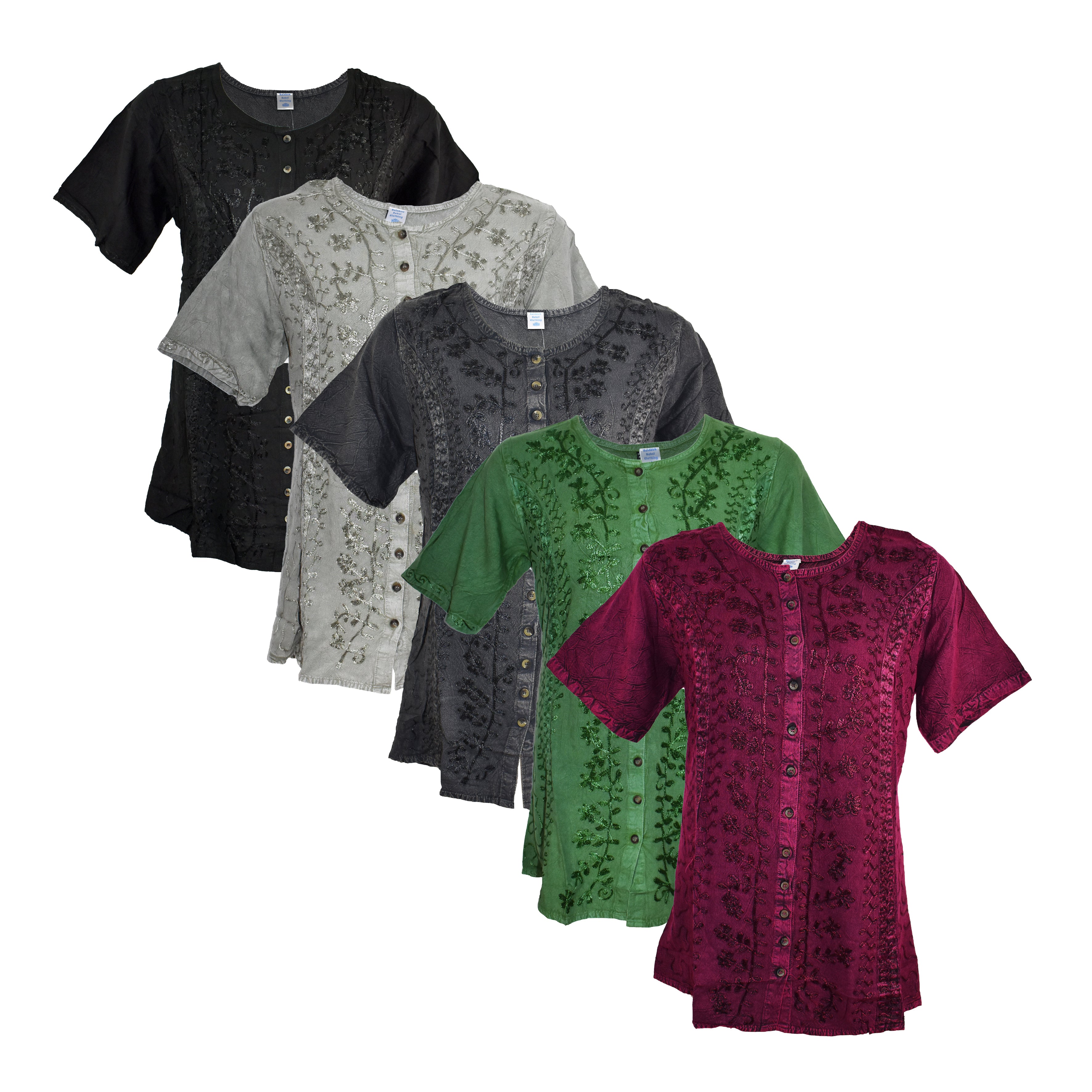 Flowy, feminine and full of detail – these gorgeous blouses are made from soft embroidered viscose with pretty tie-backs, so you can wear them loose and relaxed or gently fitted to suit your style. Designed in a generous free size, they’re suggested to best fit UK sizes 18–22 depending on chest shape, and fall to a flattering hip length.