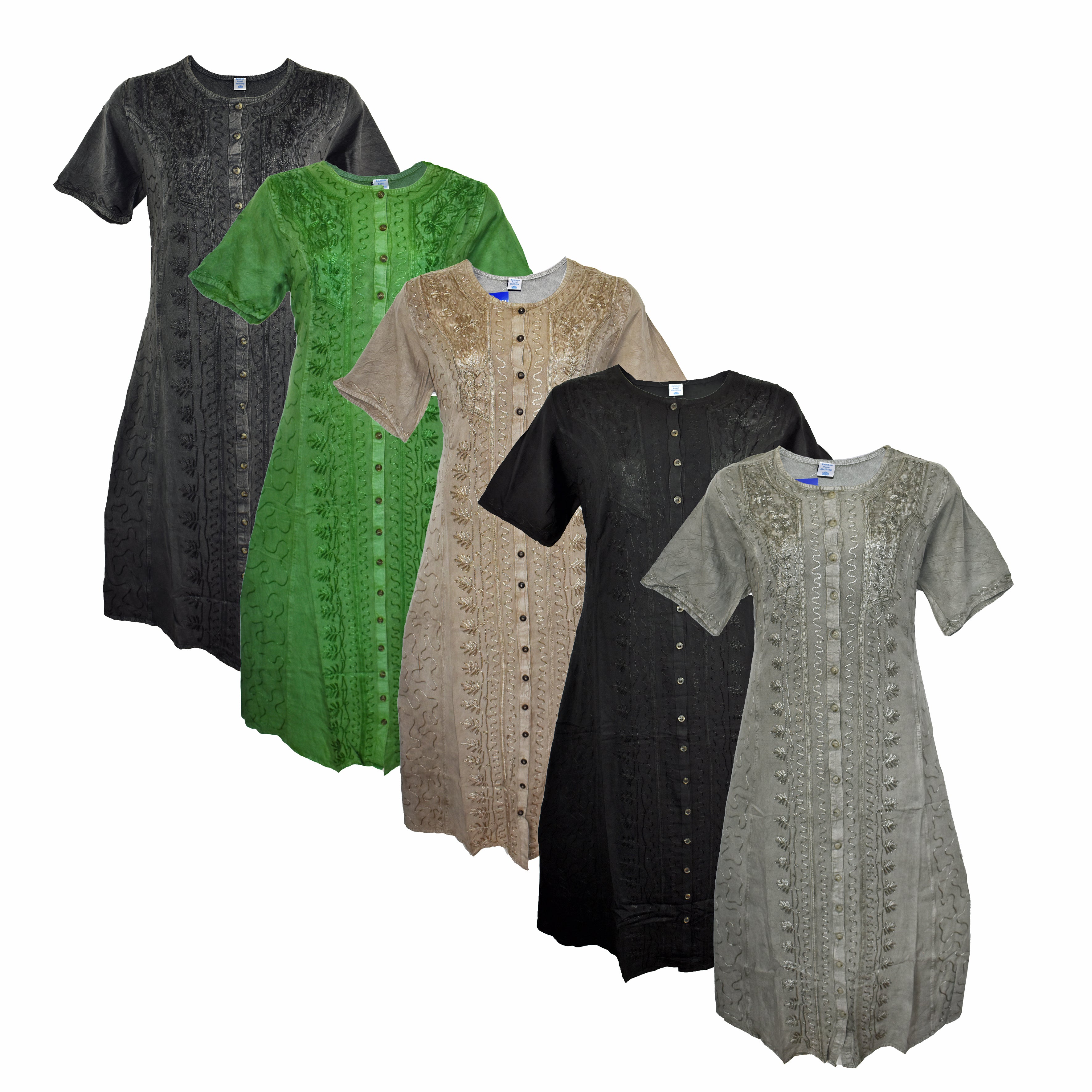 Flowy, feminine and full of detail – these gorgeous dresses are made from soft embroidered viscose with pretty tie-backs, so you can wear them loose and relaxed or gently fitted to suit your style. Designed in a generous free size, they’re suggested to best fit UK sizes 18–22 depending on chest shape, and fall to a flattering mid calf length.