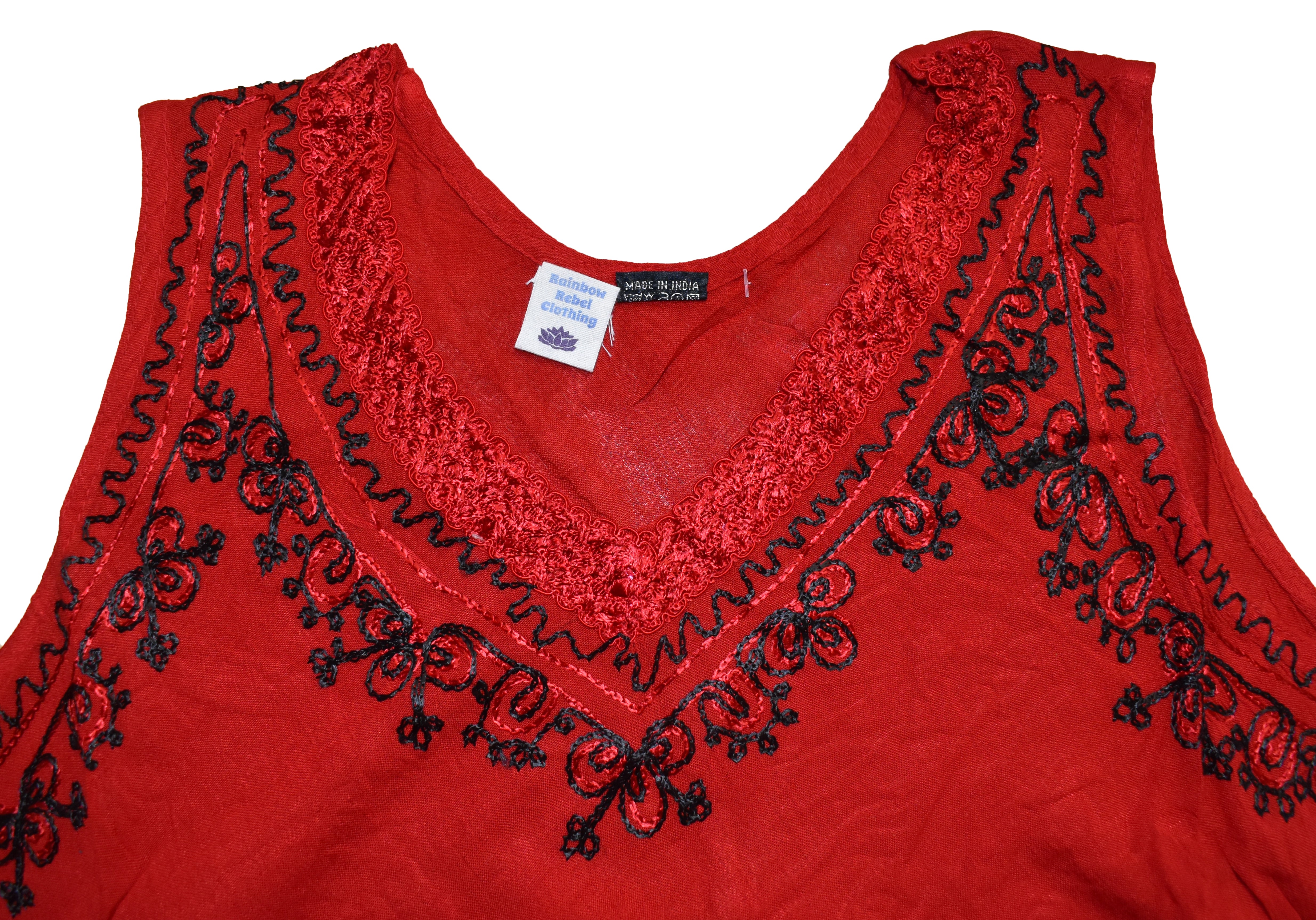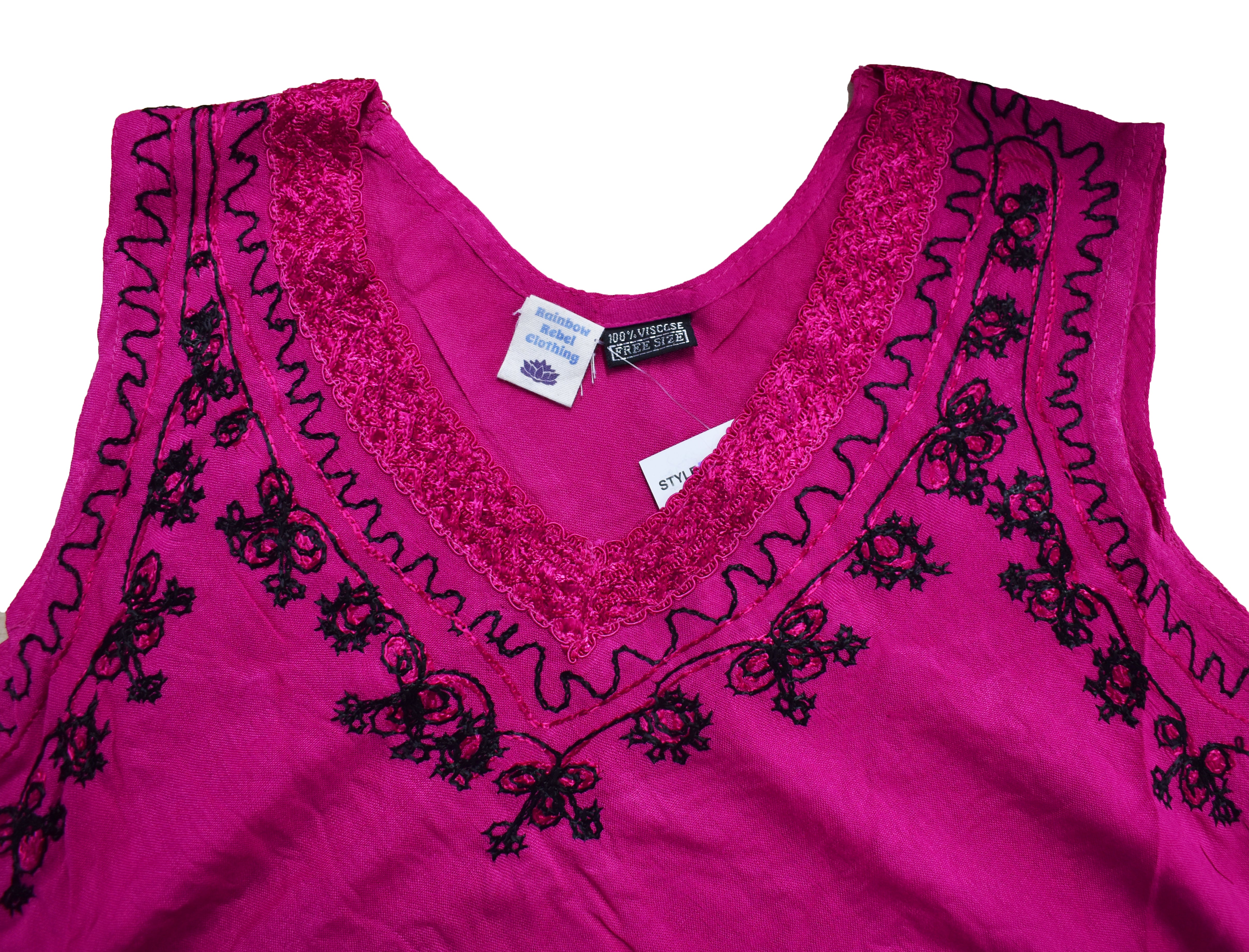 Light, floaty and effortlessly flattering, these sleeveless vest tops are made from soft viscose fabric with beautiful embroidery along the neckline and hem. Designed with a wide shoulder strap and a gently flared shape, the fabric falls like an umbrella dress — skimming the body without clinging at the waist.