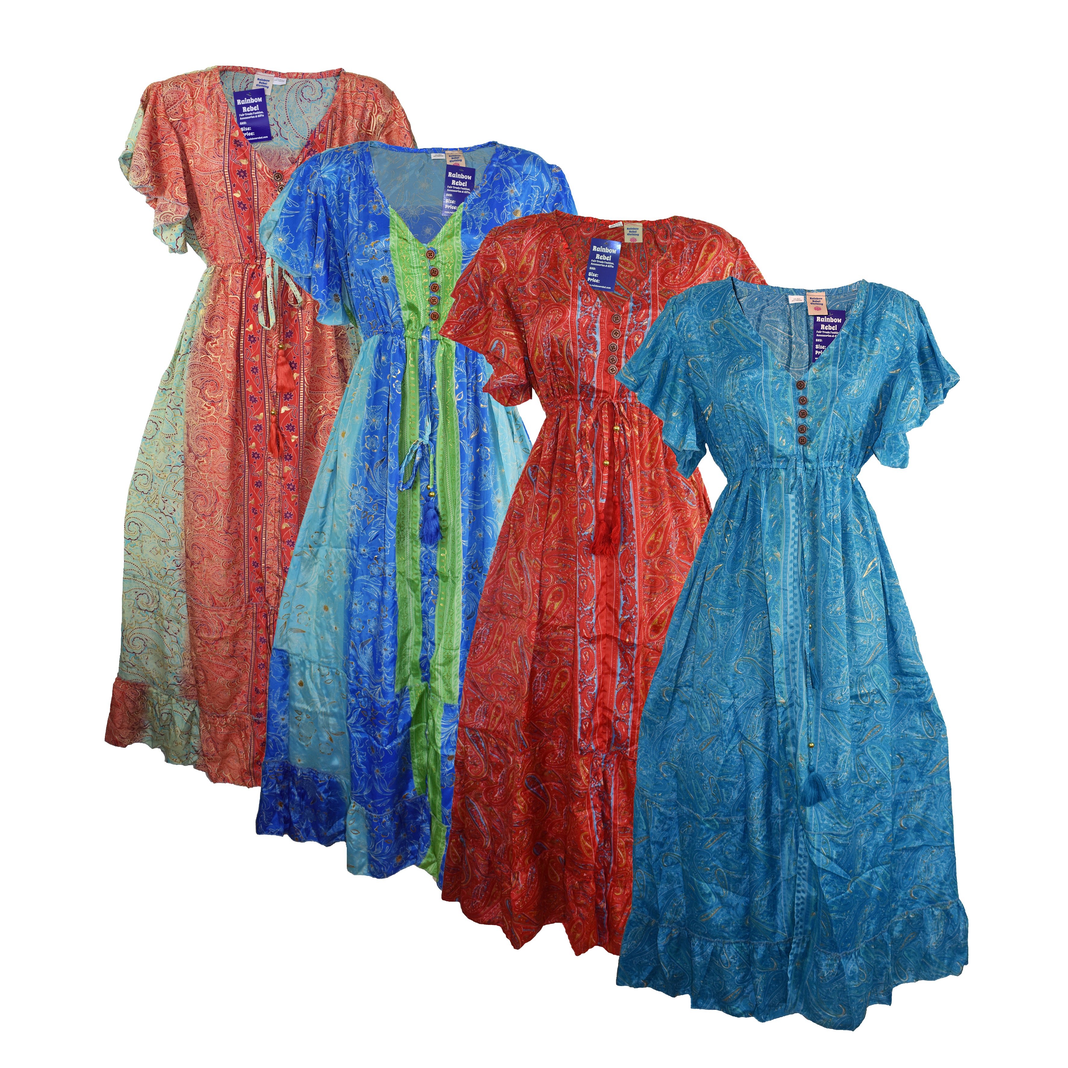 Crafted from a durable viscose and silk mix, it feels luxurious while offering long-lasting wear. With beautiful button detail on the front and floaty short sleeves, this dress is as stylish as it is comfortable.