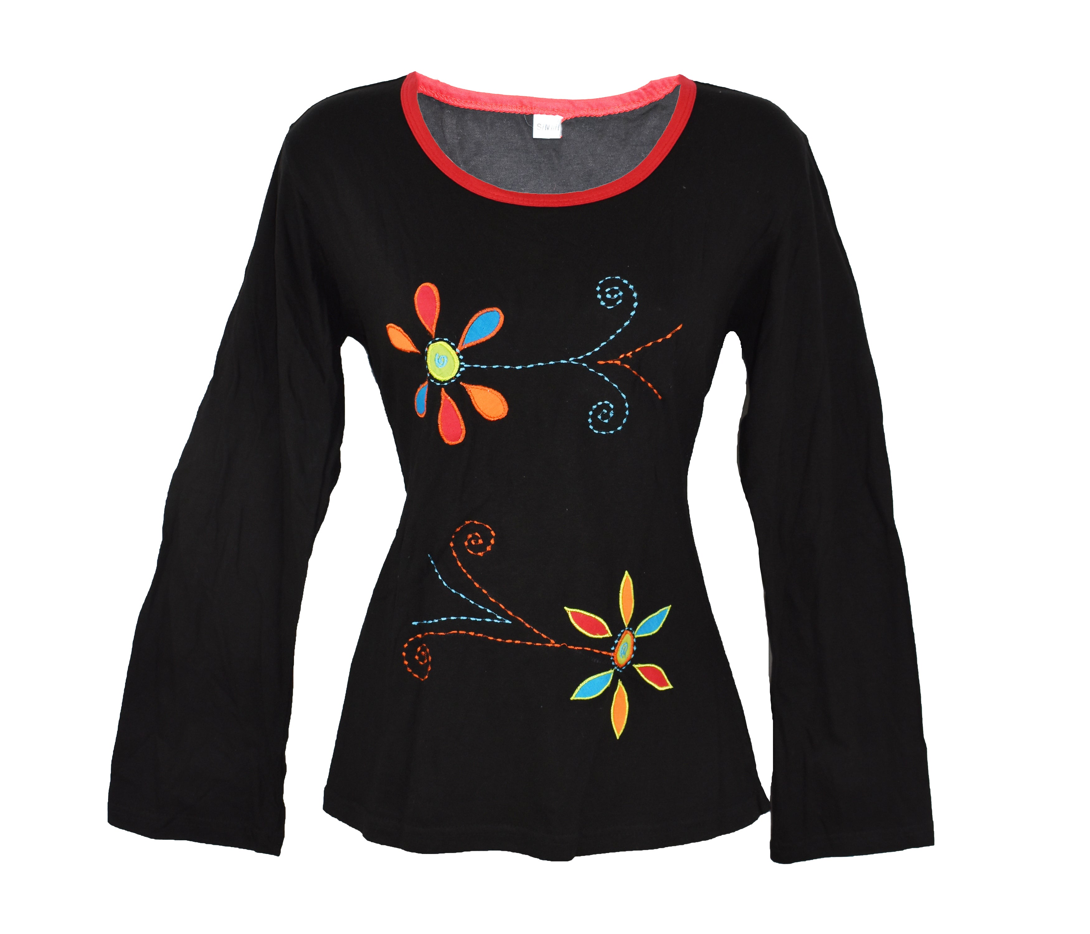 These tops have embroidered flower patterns on the front and a plain back. Available in two sizes they are great worn with dark jeans!