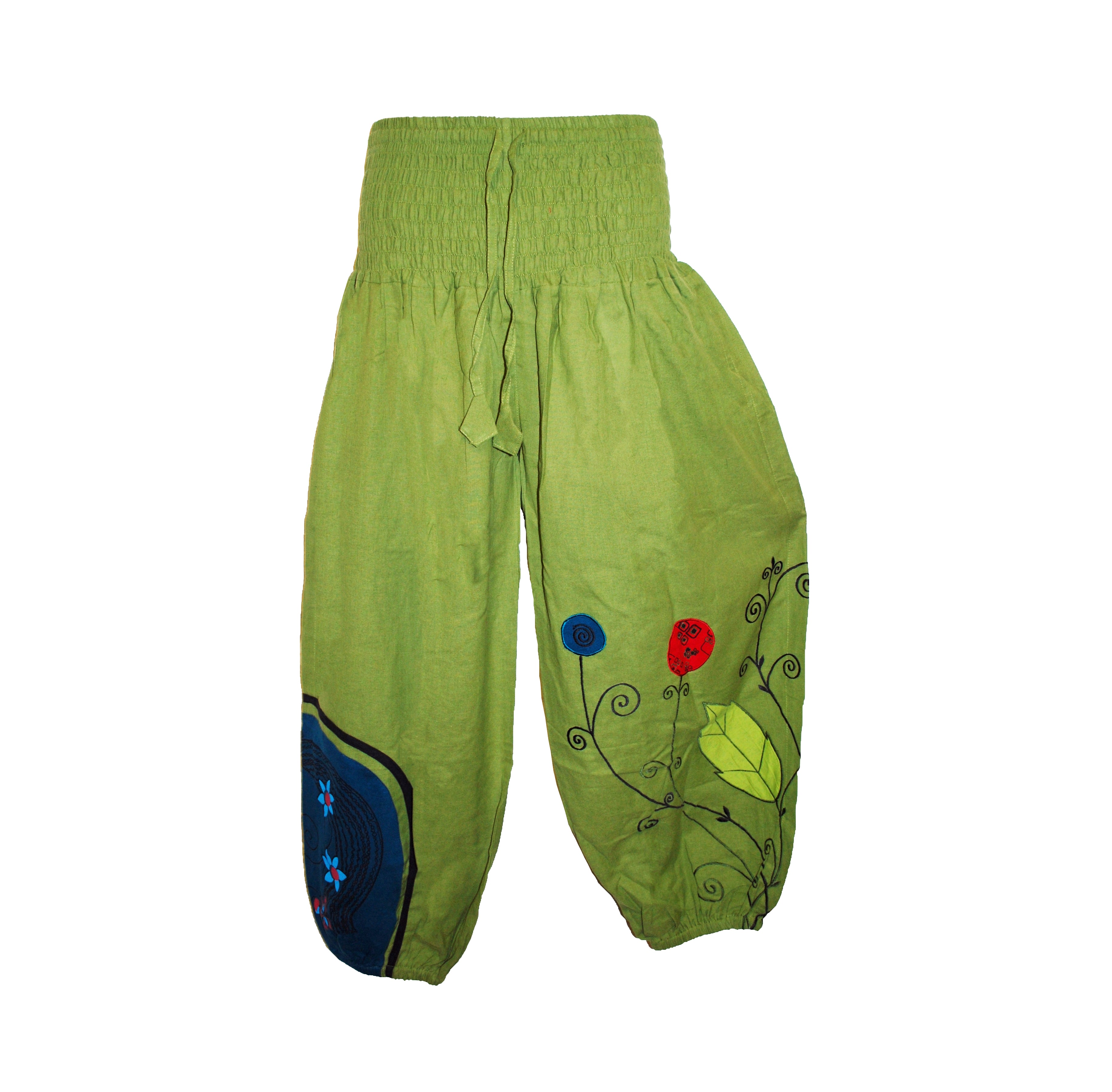 These new trousers are made to our design and sizing by our talented tailor in Nepal.  The waistband is fully elasticated with super soft elastic and also has a draw cord.  There are pockets on the waist on both sides.  Made from preshrunk cotton these are machine washable on a cool wash and line dry.  Extremely well made they look great with a plain t-shirt and equally suitable for daily or work wear!