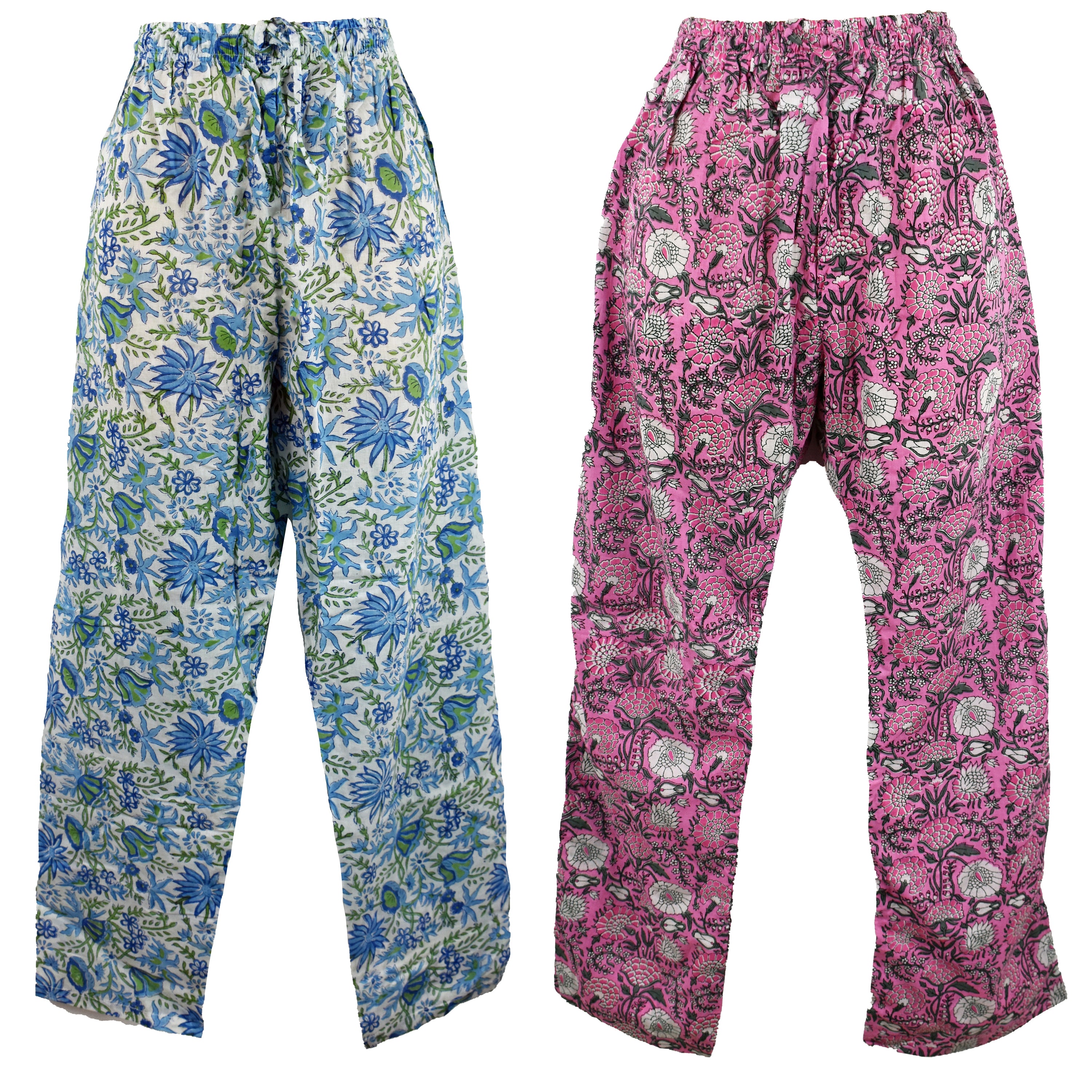 These trousers are made from block printed lightweight summer cotton fabric in a range of patterns.  All are suggested best fit size 8 - 12 max.