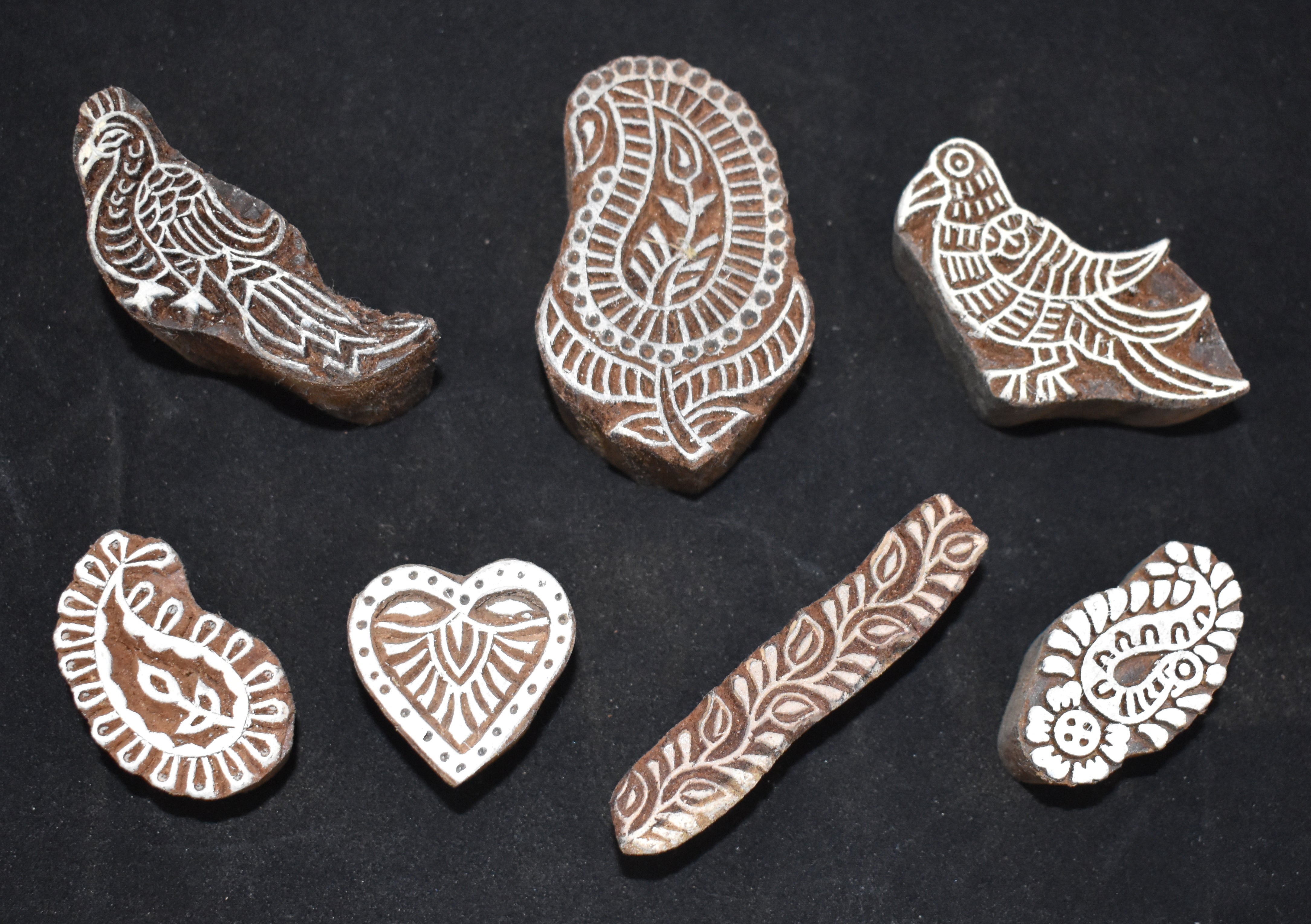 All our woodblocks are made on a fair trade basis from sustainable Sheesham wood by our supplier Gurmakh and his family in India.  Each is hard carved so unique. The men do the carving by making a design in metal wire, heating it and then stamping it onto the raw blocks.  The scorched marks are then used as a template for hand carving the design.  Next the women soak the blocks in linseed oil, dry them and finish them with a gesso white paint on the printing surface to give a hard and durable yet smooth finish for printing.  Often the natural wood oils change the gesso colour to light brown.  The blocks are cut deep enough for printing onto fabric and paper. Great used with acrylic and fabric paints or printing ink.  Those with an advanced skill can also print with henna onto skin or press into clay.  However they can also just be used as a decorative piece of art for the home!