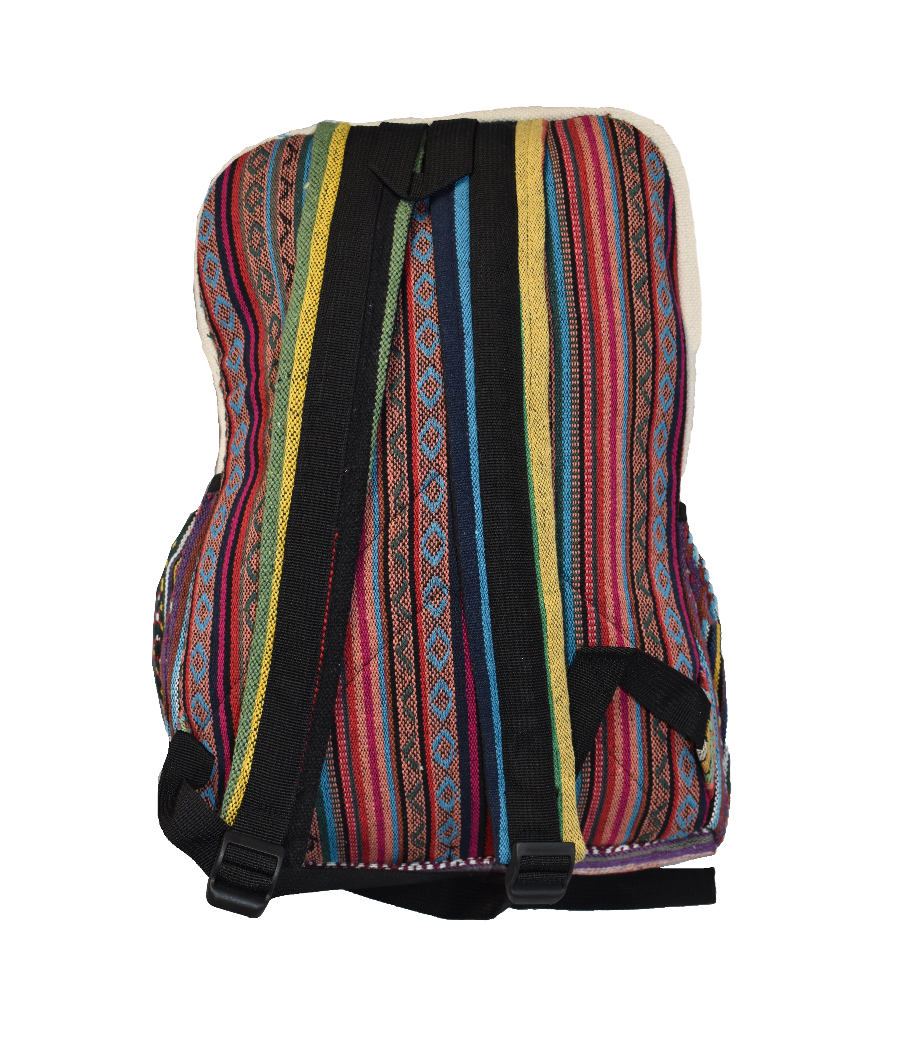 Add a splash of colour to your day with our cotton and hemp back packs. It features a fully lined main compartment with internal padded pouch for tech, a handy front zip pocket, and two side pouch pockets for easy access essentials. Adjustable shoulder straps and lightly padded back ensure a comfortable fit, and a top loop makes it simple to hang or carry. Perfect as an everyday grab-and-go bag.
