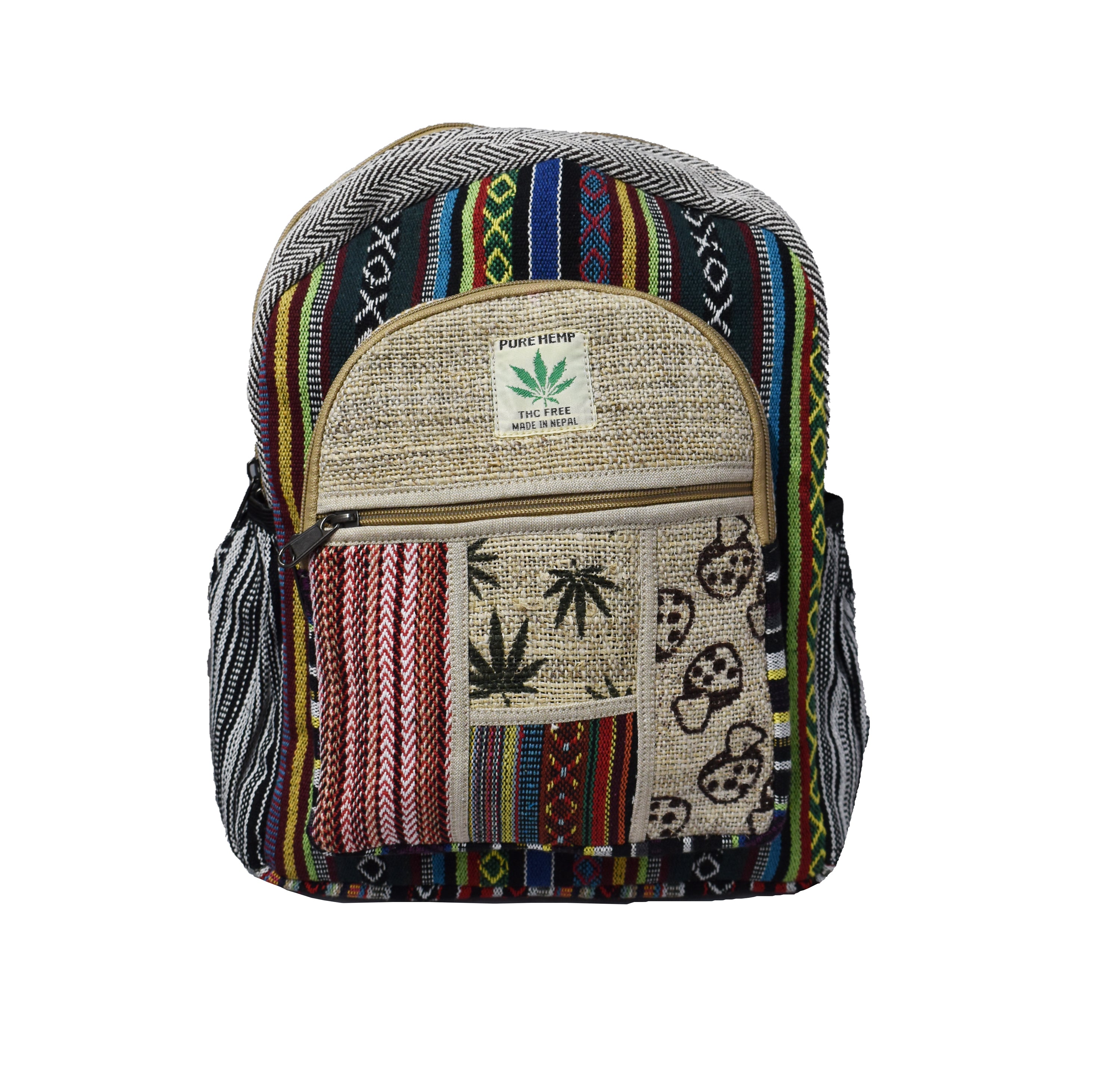 These eye-catching backpacks are based on our classic plain design — but with a vibrant twist! Featuring tie-dye hemp panels and playful printed patterns on the front, they’re perfect for adding a splash of colour to your everyday look.