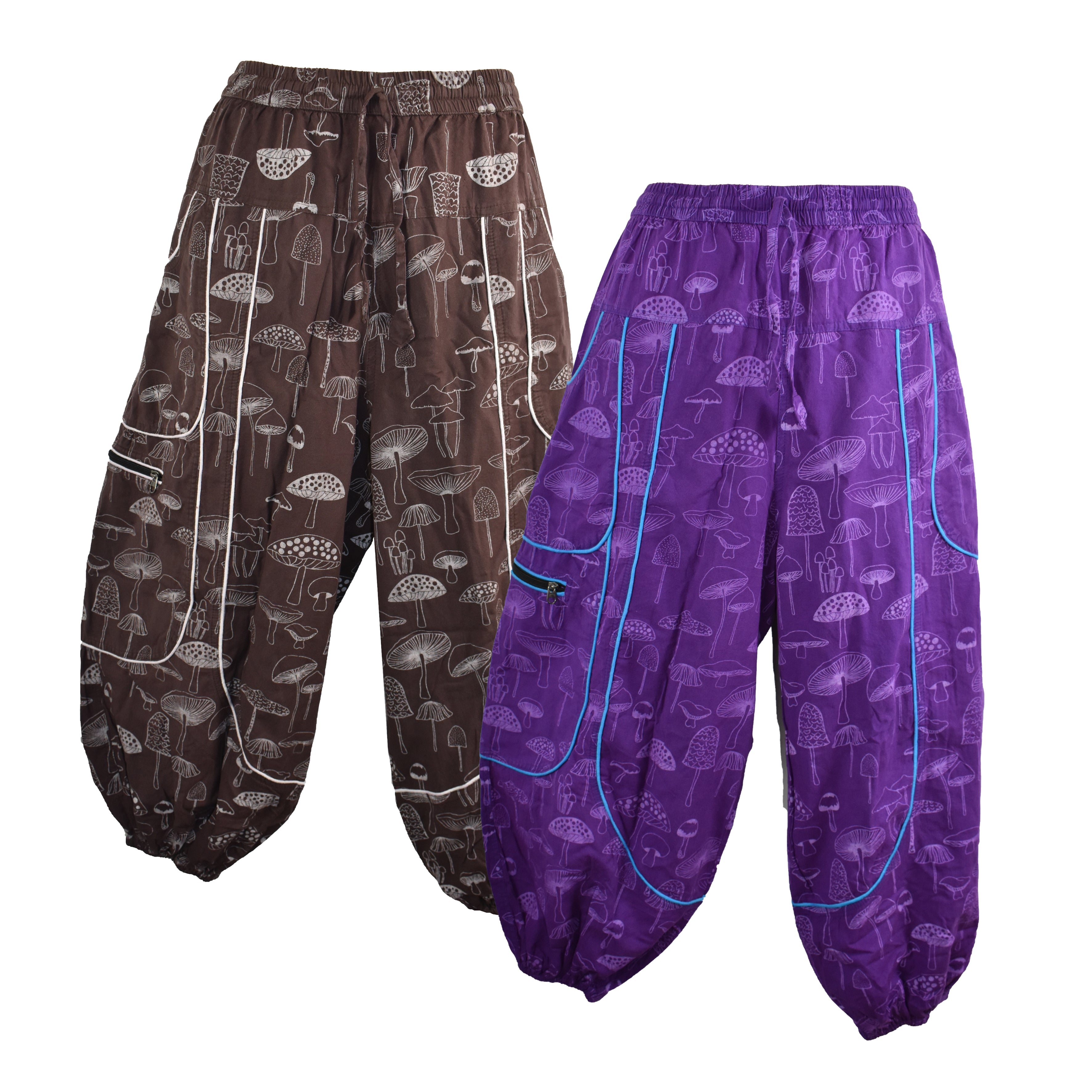 Embrace comfort and style with our Mushroom Print Harem Trousers — made from a heavier-weight cotton, perfect for cooler weather.