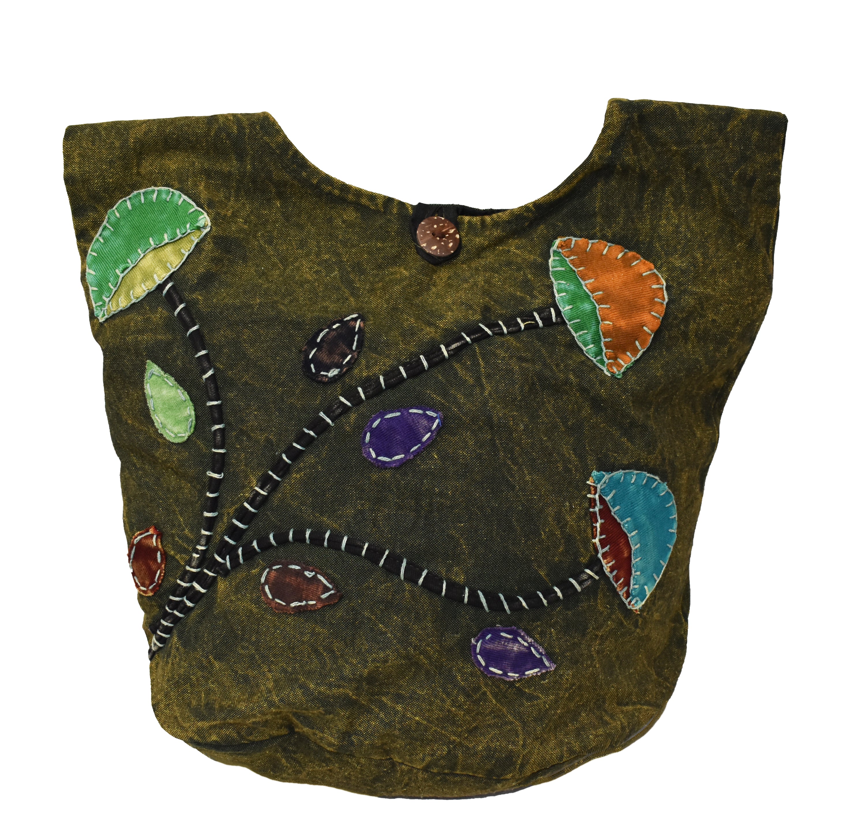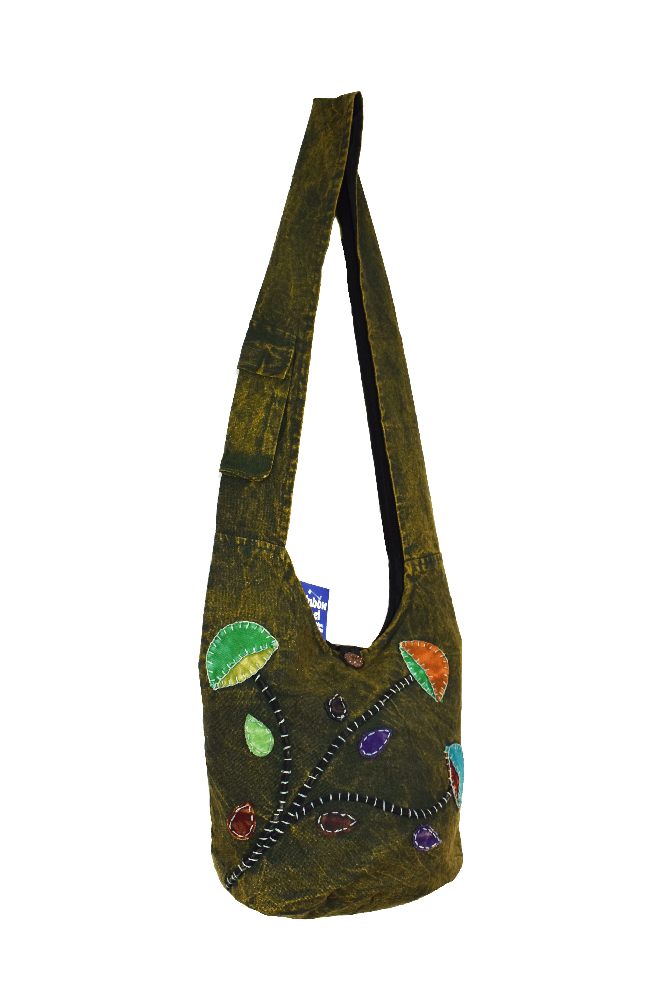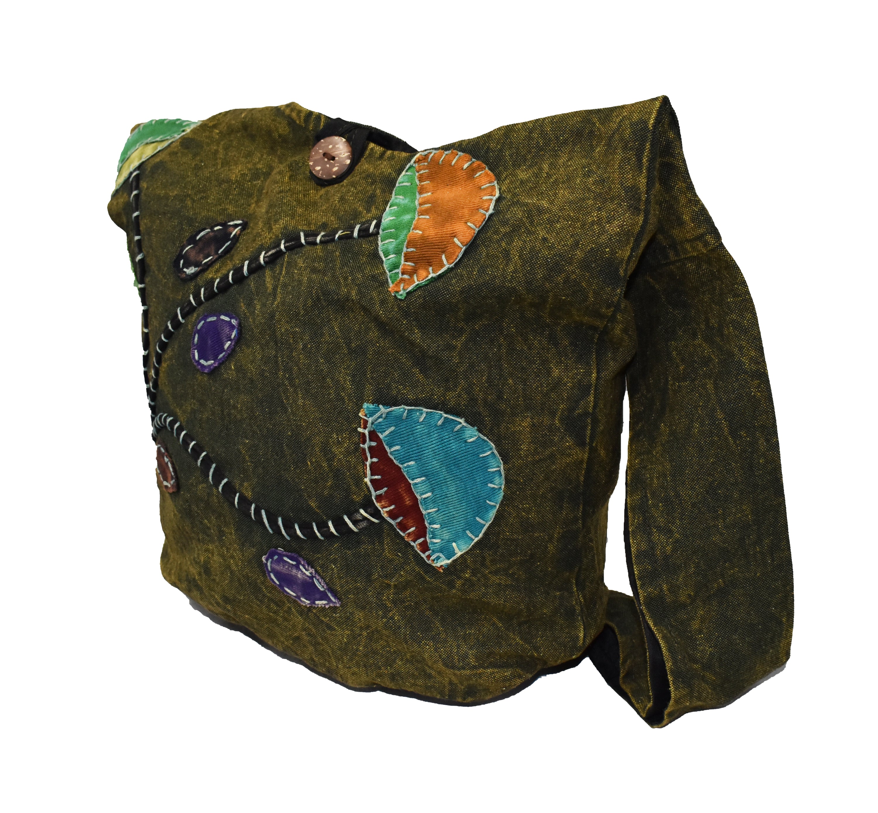 These stonewashed cotton shoulder bags features embroidered mushroom designs on the front. Spacious enough for everyday use, it is fully lined and secures with both a zip and button. Inside, you’ll find a small zip pocket, plus an additional pouch on the strap for easy-access essentials. Wear it comfortably on the shoulder or across the body. Each bag is made in the same colourway, but placement of each colour on the mushrooms may vary to photo.