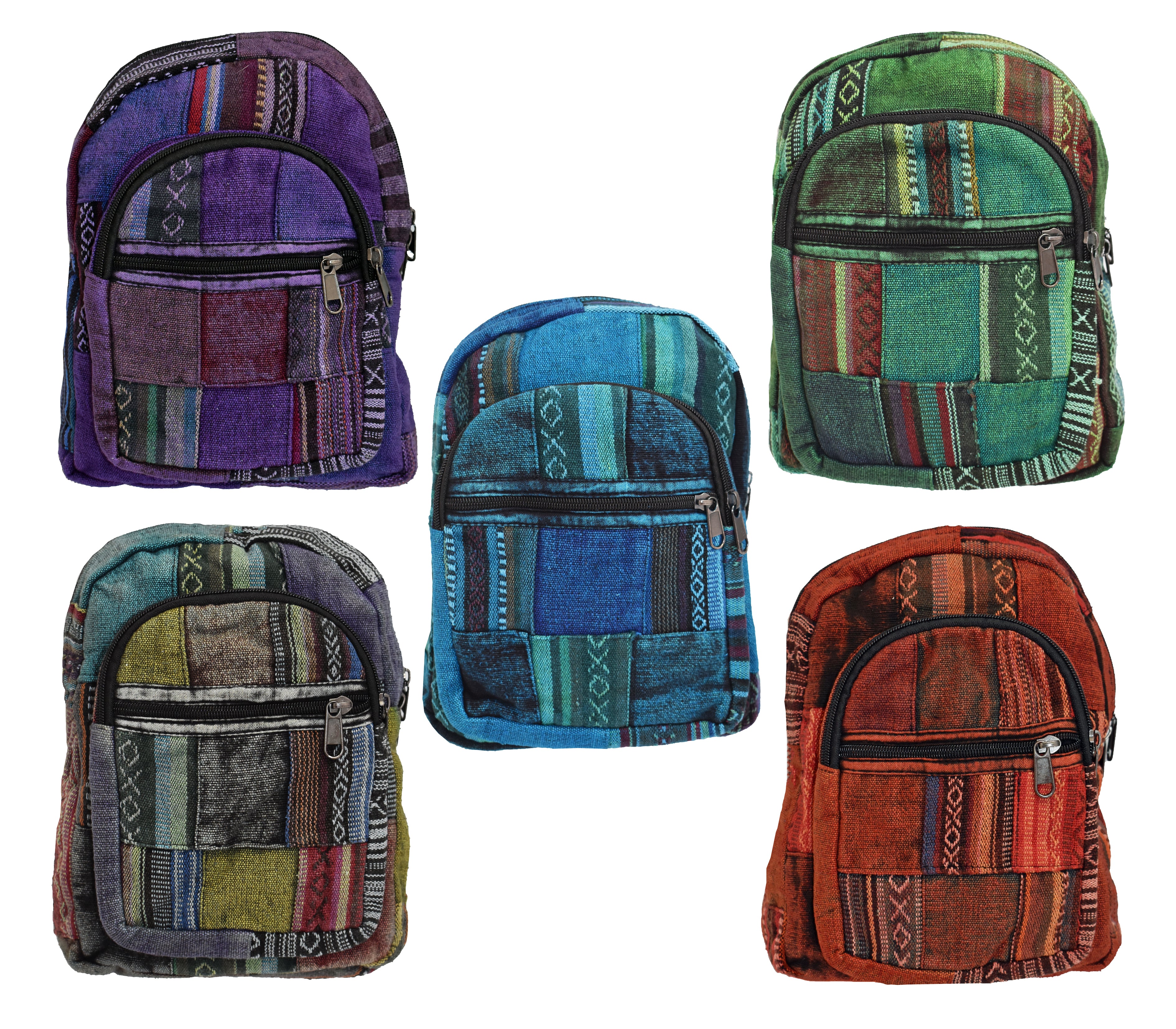 These back packs are made from patchwork cotton which are then over dyed into 5 colour ways. They have 3 zip pockets lined in black cotton and lightly padded. The shoulder straps are adjustable. There is a loop on the top for hanging.
