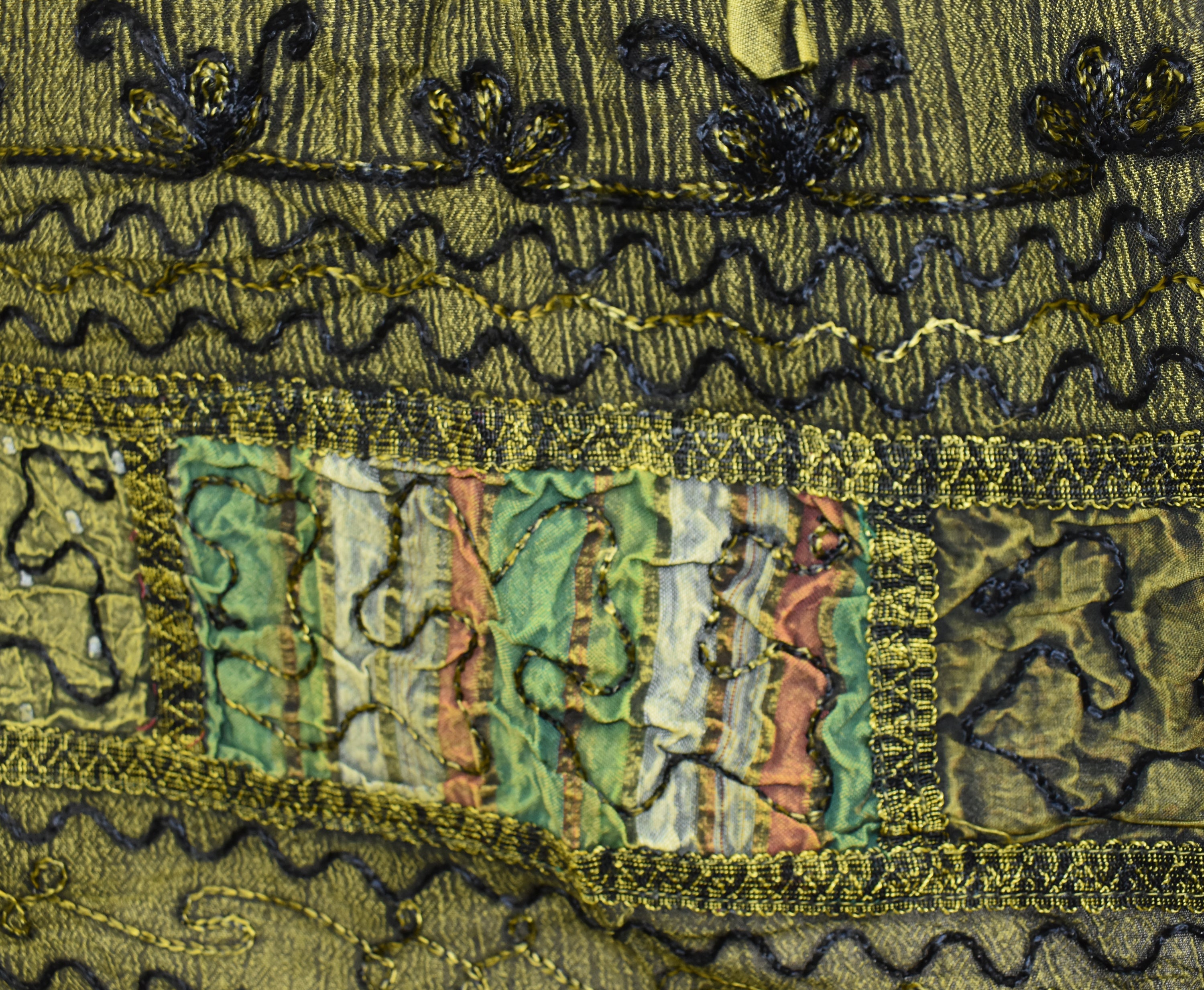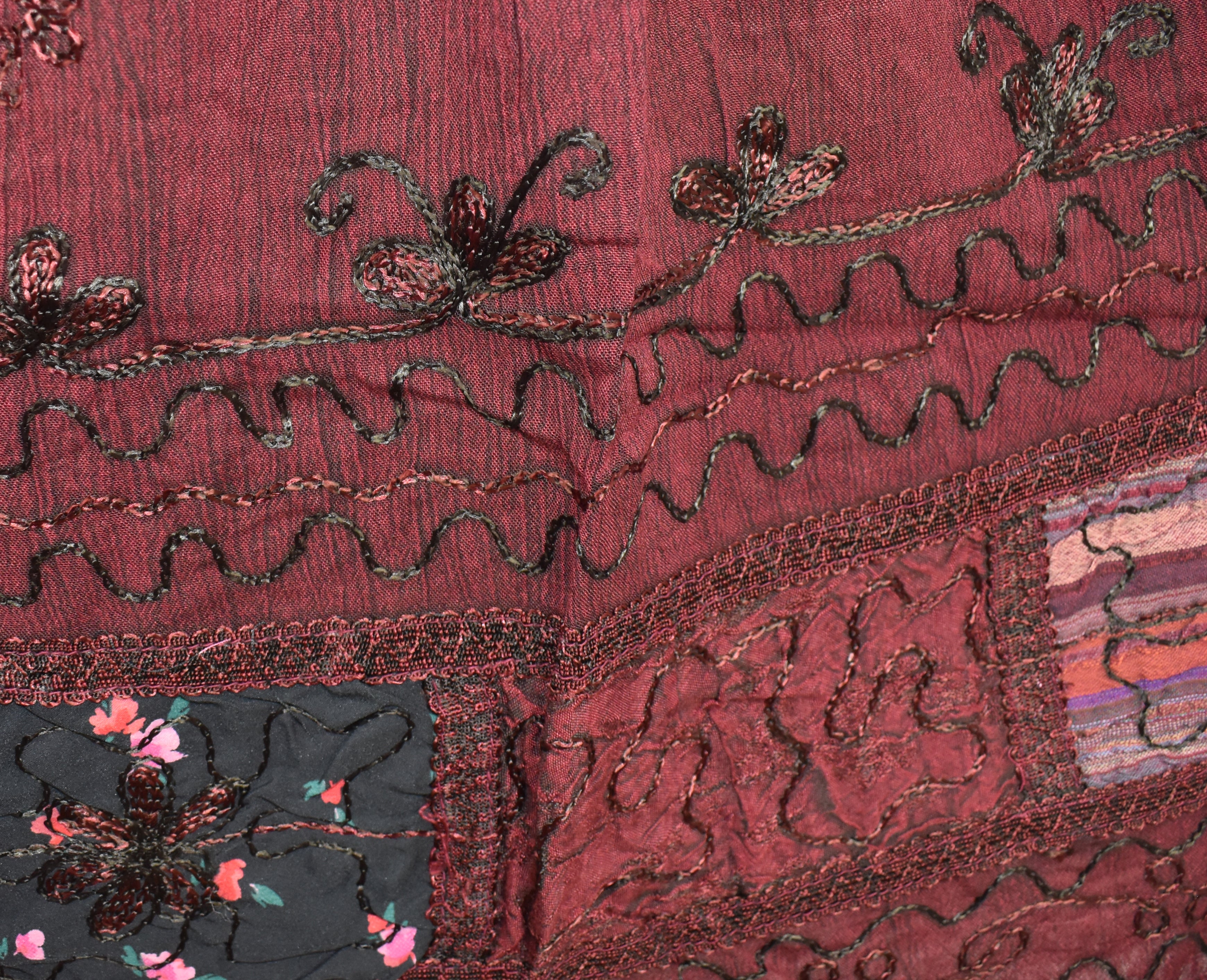 • Floral embroidery & patchwork detail
