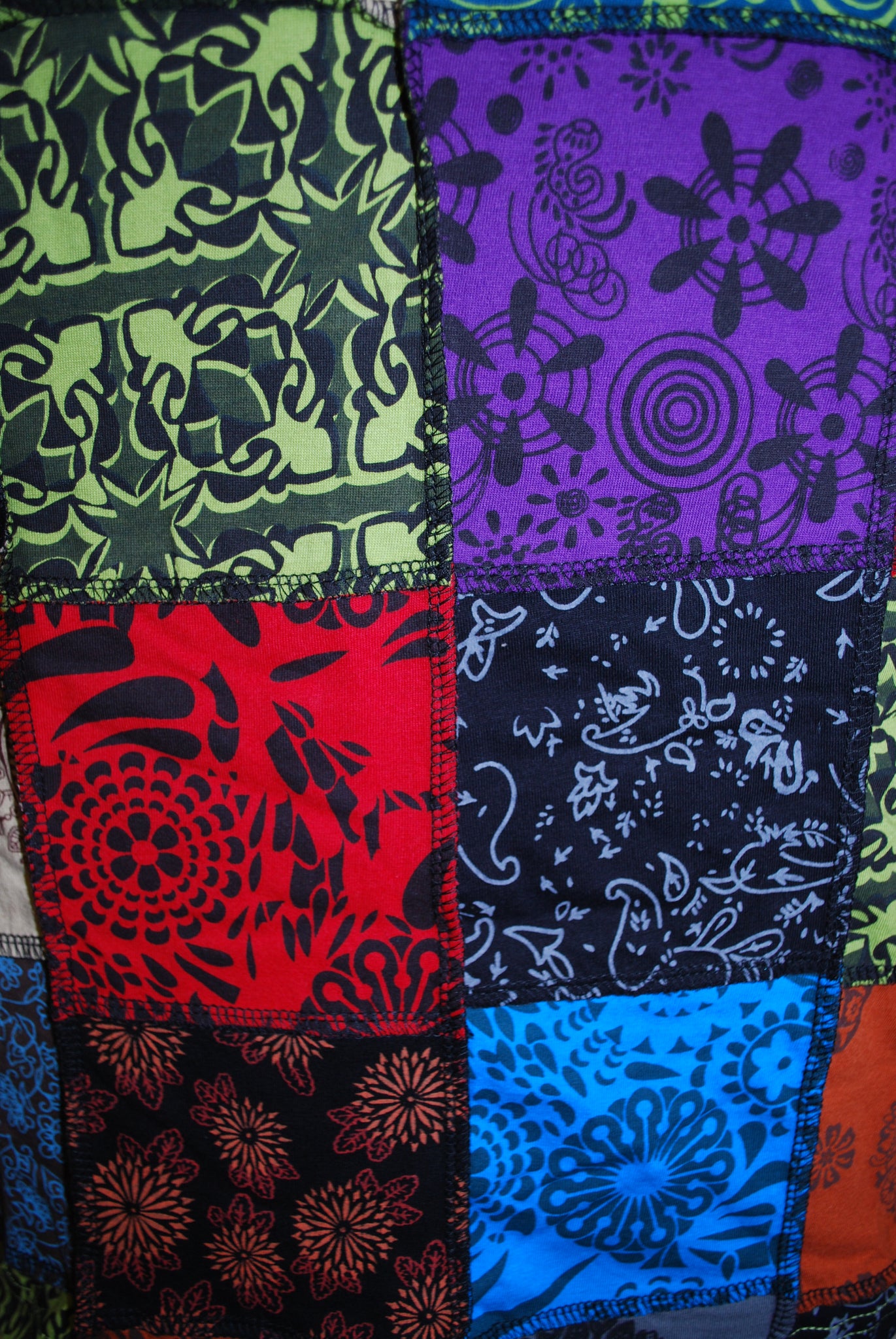 These tops have been designed by us and made on a fair trade basis by our master tailor in Nepal from soft t-shirt cotton.  The front is patchwork with printed patterns and the back is plain.  Machine washable on a cool wash and line dry!  These tops would look great with jeans or leggings both at festivals and for daily wear! Made a little longer in the body and in sleeve width for comfort!