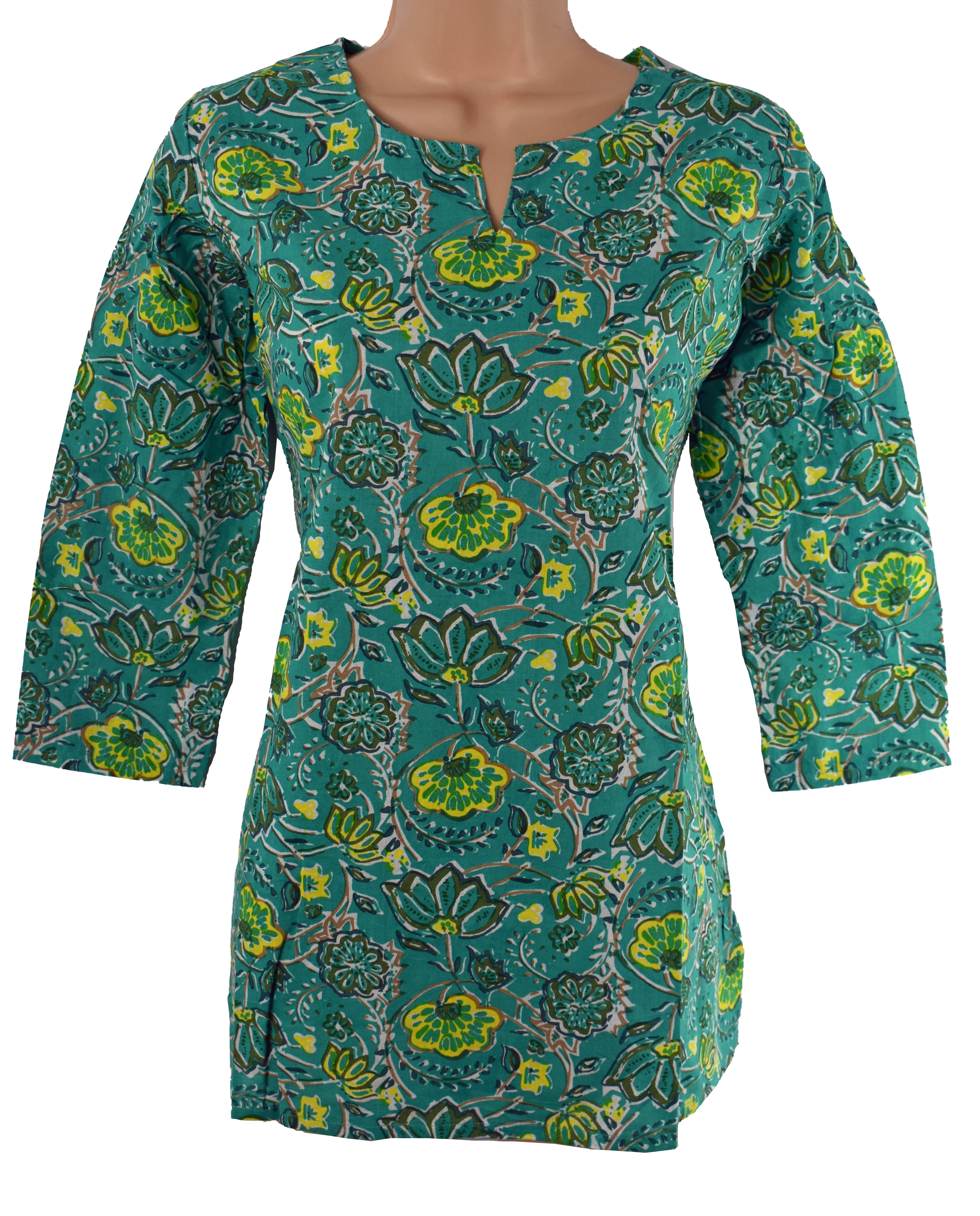 These printed cotton kurta tops come in one size suggested best for size 10 - 14 depending on your own measurements. Sleeves 3/4 length.