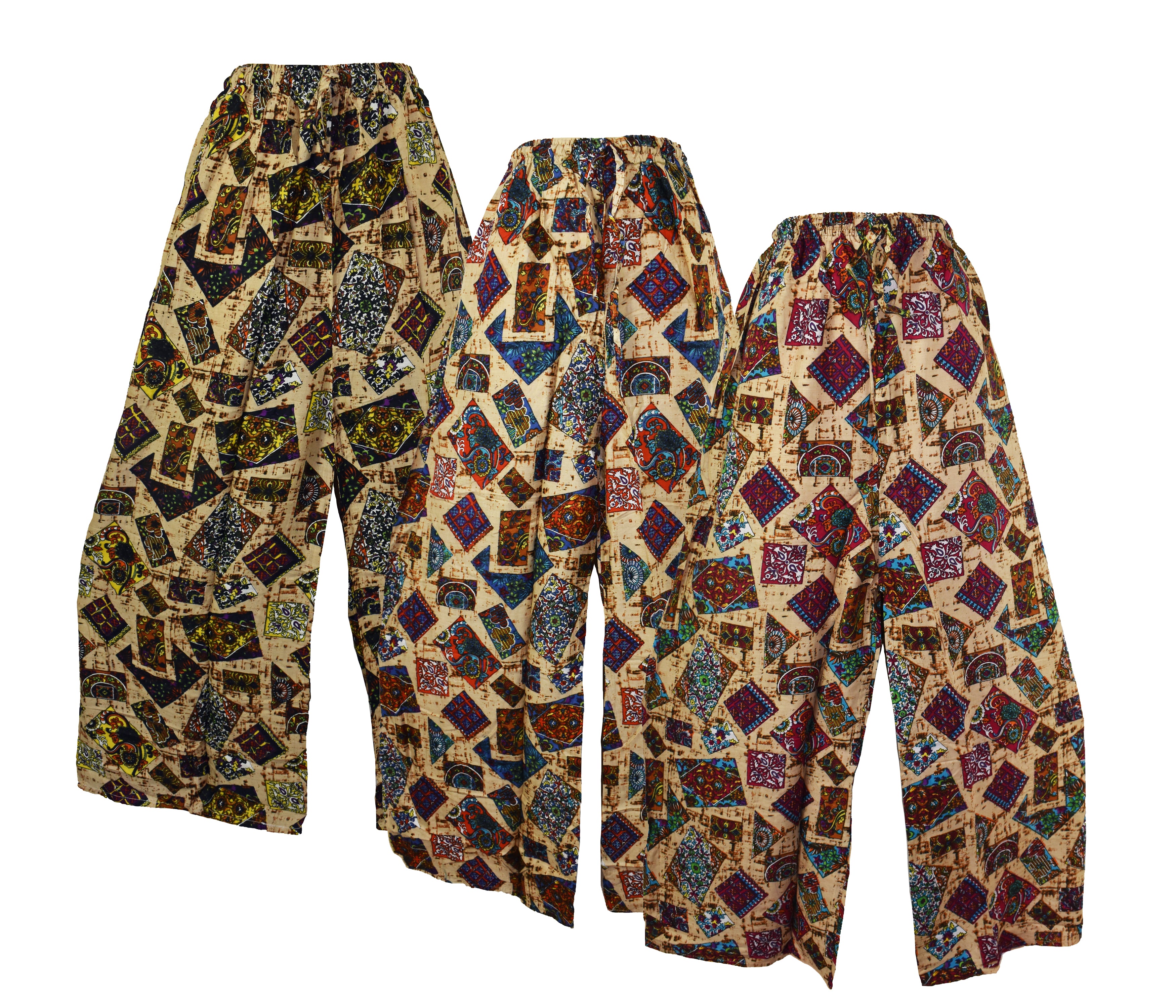 These great trousers are made from soft printed rayon with full elasticated waist and draw cord. Available in one size and three colours, suggested suitable for anyone size 8 -12/14.