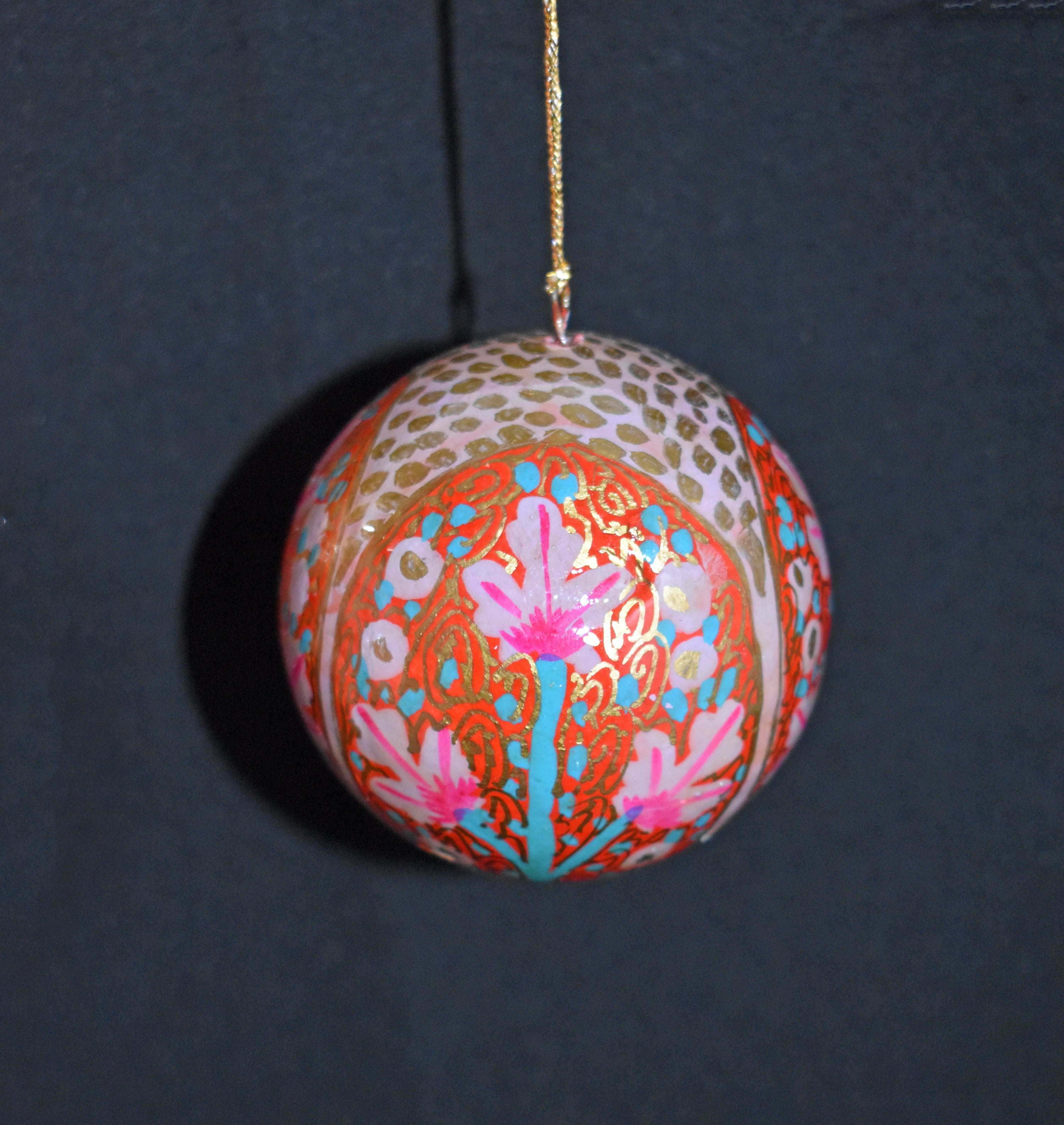 These beautiful baubles are made in Kashmir from wood pulp and recycled paper, then hand painted and varnished to create a glossy, durable finish that catches the light beautifully. Each piece is crafted by skilled artisans working under Fair Trade conditions.