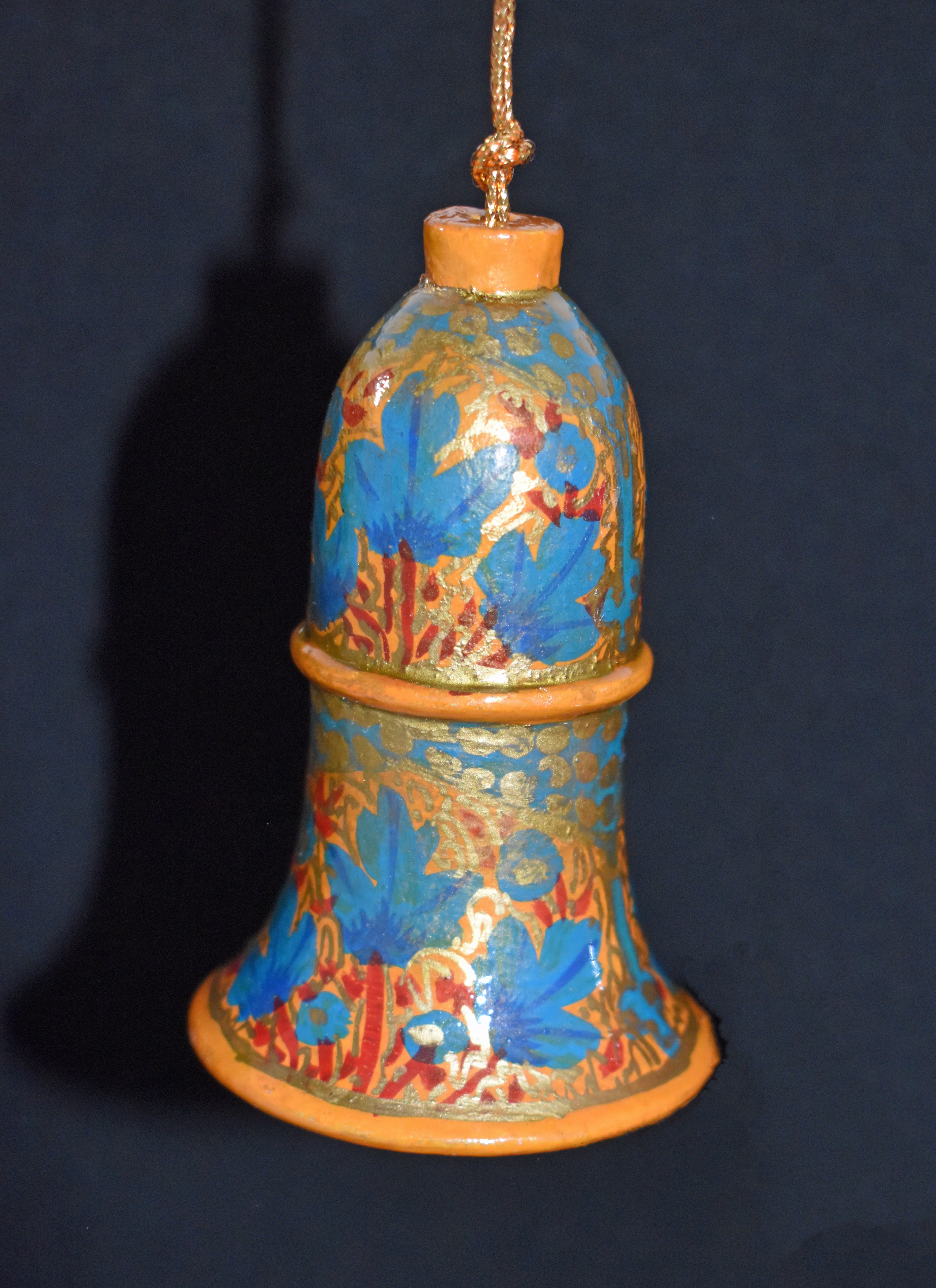 These beautiful bells are made in Kashmir from wood pulp and recycled paper, then hand painted and varnished to create a glossy, durable finish that catches the light beautifully. Each piece is crafted by skilled artisans working under Fair Trade conditions.