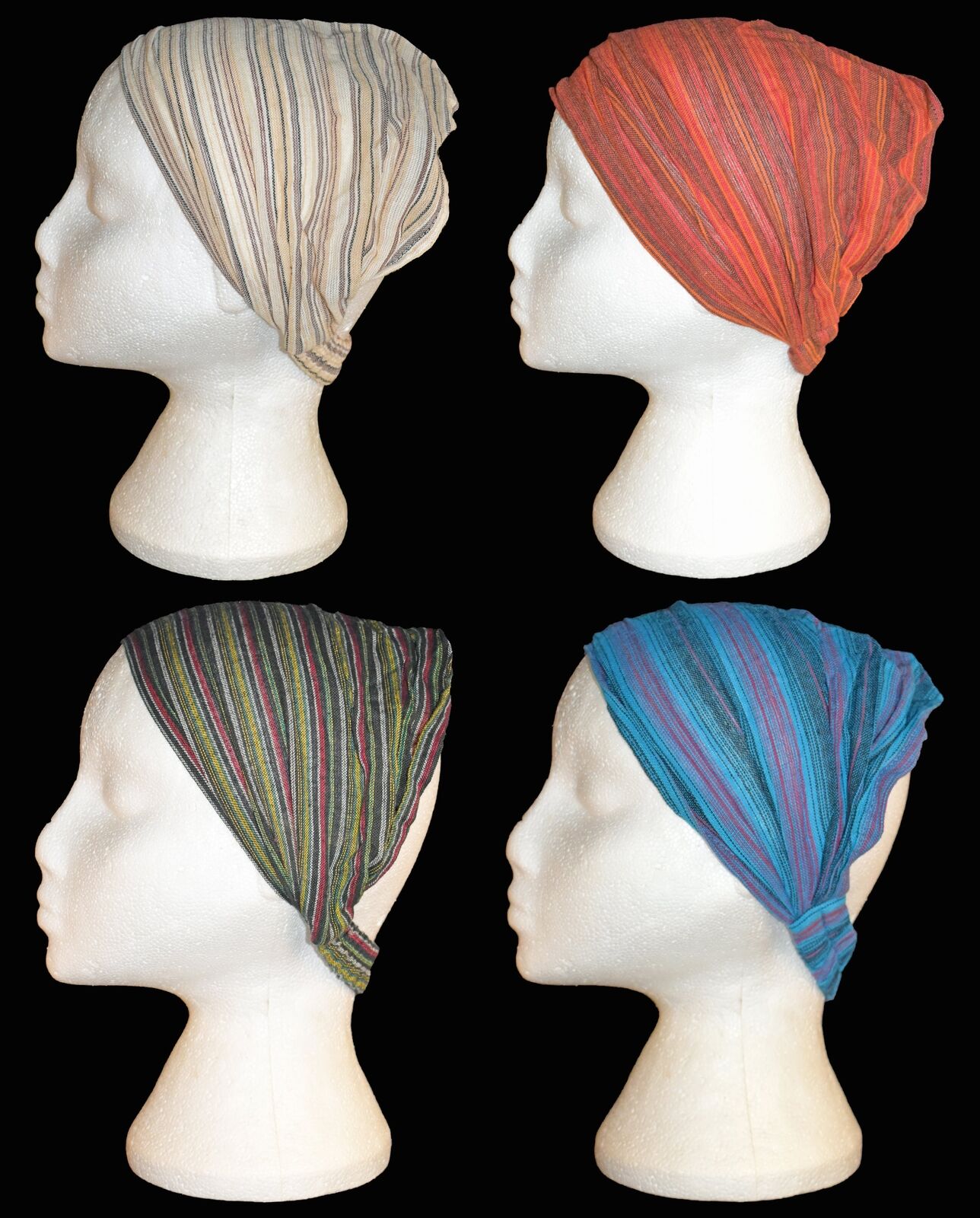 These ethical striped cotton hair bands have been made on a fair trade basis from the new remnant fabric left behind from making our striped shirts.  A great way of preventing fabric waste.  They can be worn scrunched up like a hair band or pulled out like a bandana.  There is an elasticated section on the nape of the neck meaning these fit more head and hair styles that other sorts of hair band.  Machine washable and made to last!