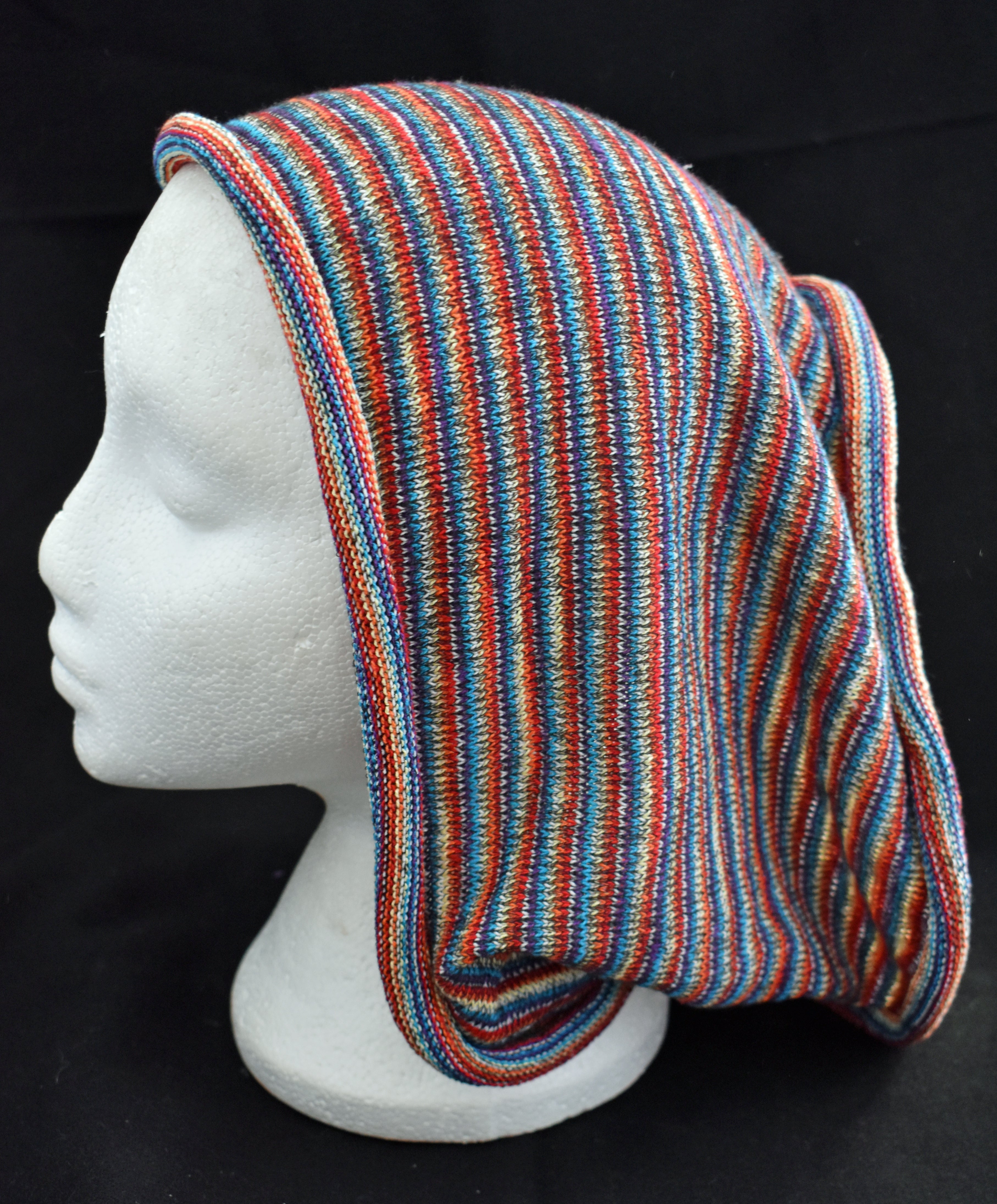 These stunning hair bands are made on a Fair Trade basis in Nepal from cotton with elastic thread interwoven for improved grip and fit.  Suitable for most adult heads and hair types they are much wider than most other single hair bands meaning they are great if you have dreads or thick hair worn singly or wrapped around double with those with less hair.  Can be pulled out to cover more of head or scrunched up like a headband.  Can also be worn around the neck or draped over the head like a snood or infinity scarf.  Many ways to wear! Machine washable on a cool wash and line dry.